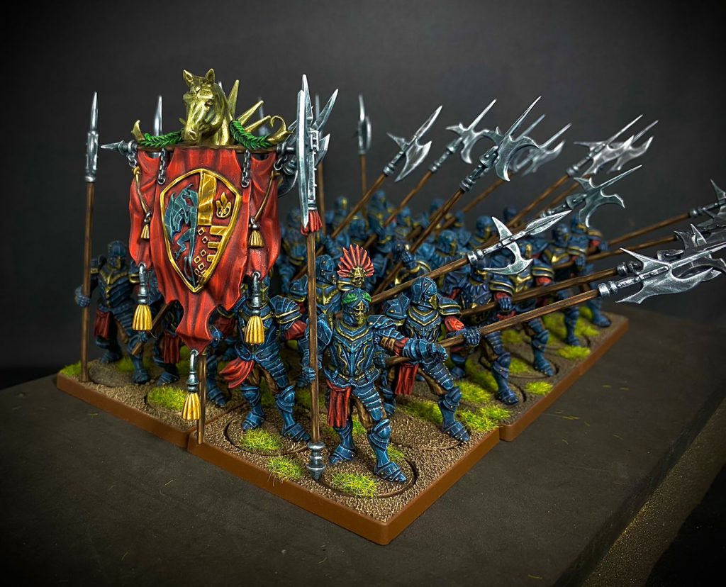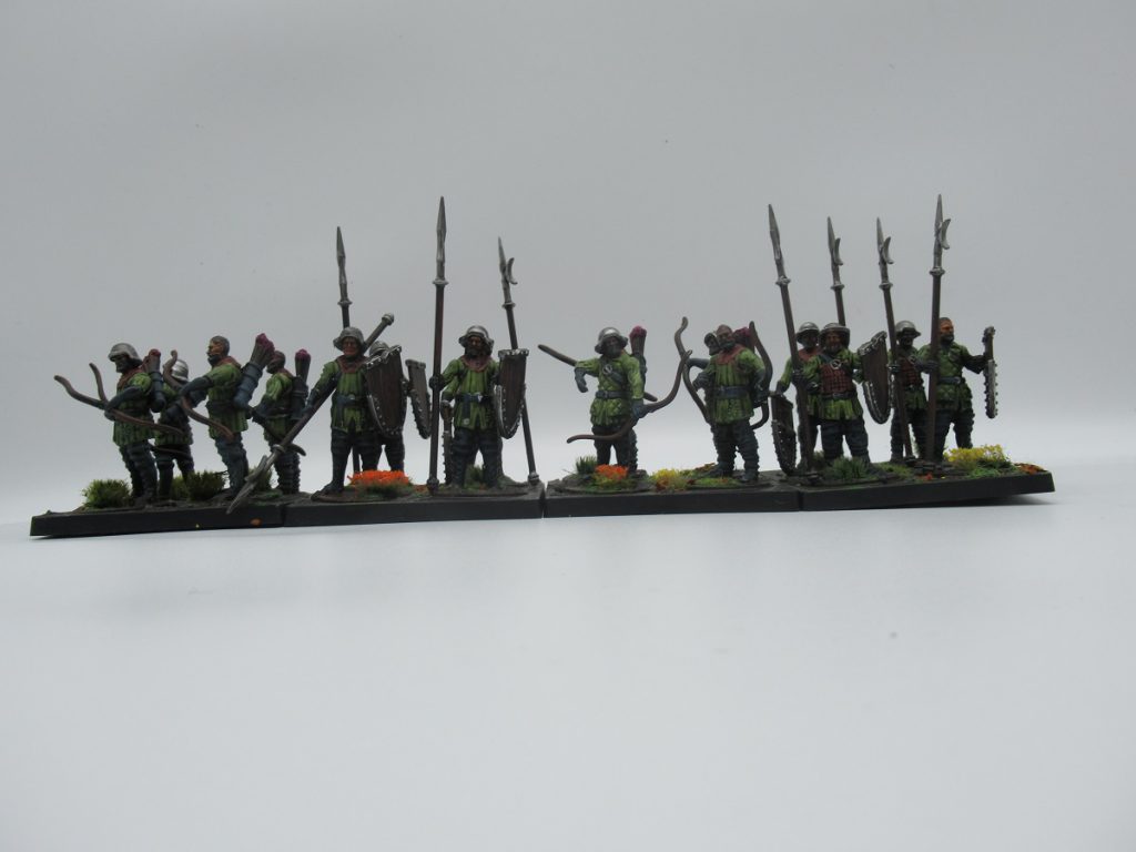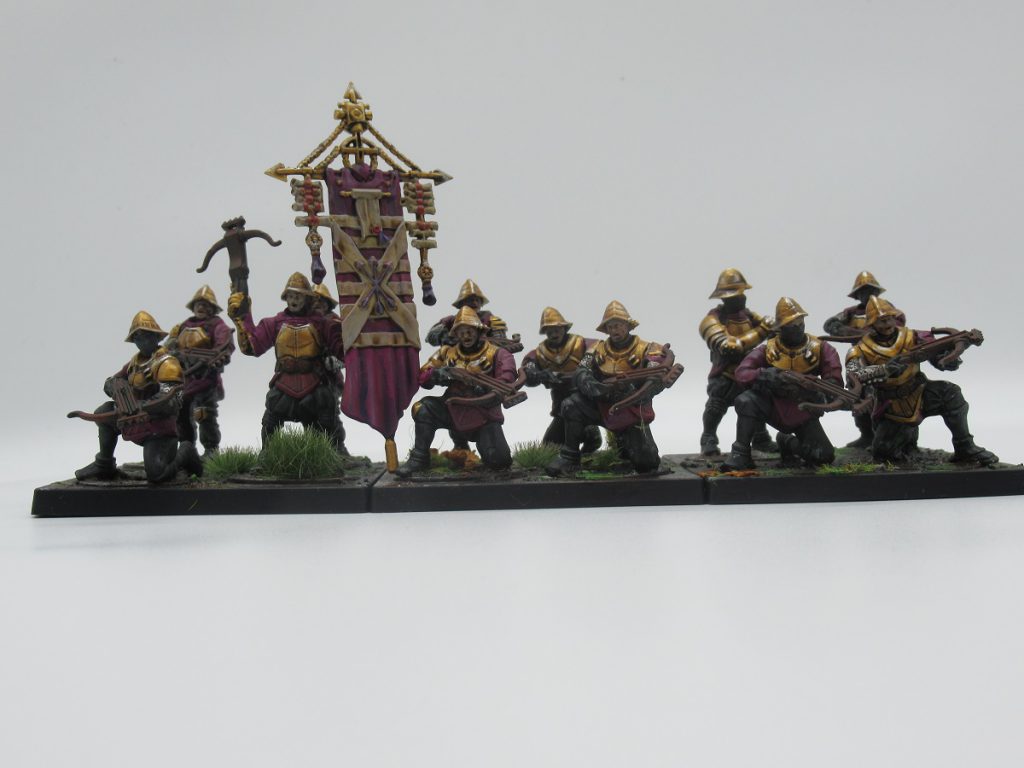 The halberd-wielding guards of wealthier households and establishments; in all, finally a proper fighting infantry for the Hundred Kingdoms. Having access to support means longer engagement range and having Cleave 1 to break armor.