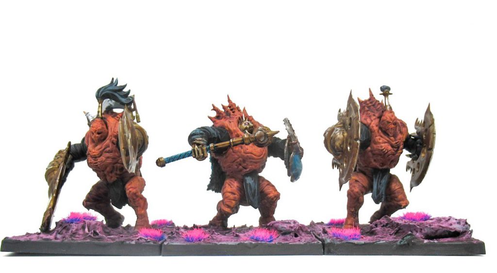 "Awfully straightforward" is the best explanation that I can give to this grotesque creation. Flurry and unstoppable means that this brute is designed to crash into an enemy front and output plenty of damage. Though lacking in cleave, flurry and 5 attacks ensures that they can reliably land 3-4 hits easily per model. Their high Resolve stats also make them less prone to running away once they are hit back.