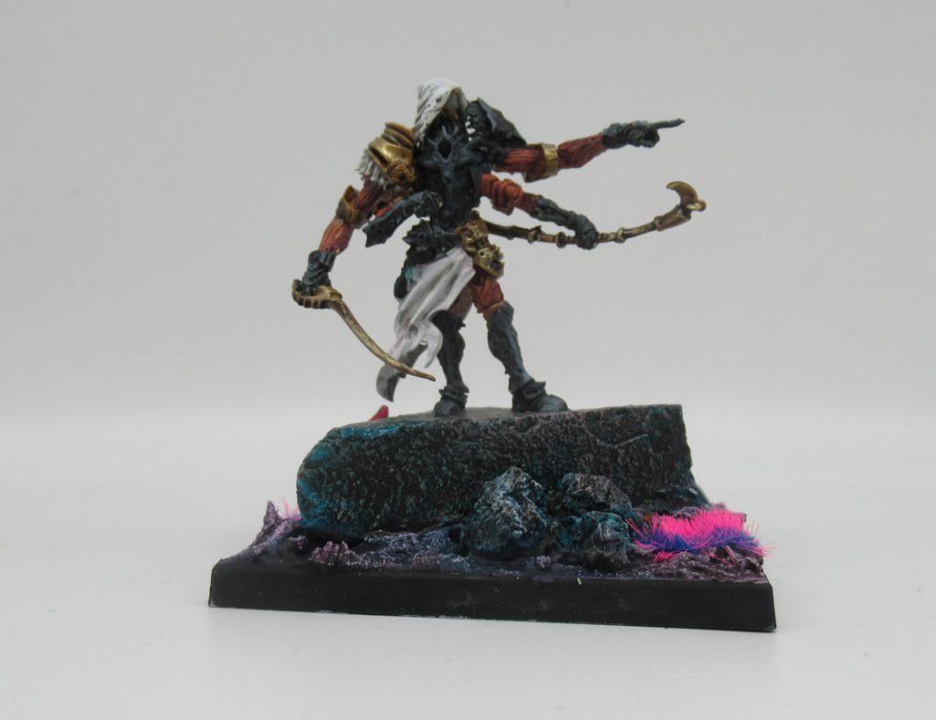 Realistically speaking, the Mimetic Assassin should always be treated as a fire and forget missile to target your opponent’s key regiment. And the defensive kit that the assassin has geared them to perform such a task. Chameleonic Epidermis makes sure that any stray ranged attacks cannot hit them if they are not within 12”. Moreover, Unnatural Reflexes will force enemy to re-roll successful volley hits anyway. Leap is a free ‘teleport’ if they require a better angle at engaging the enemy or to get out of sticky situations.