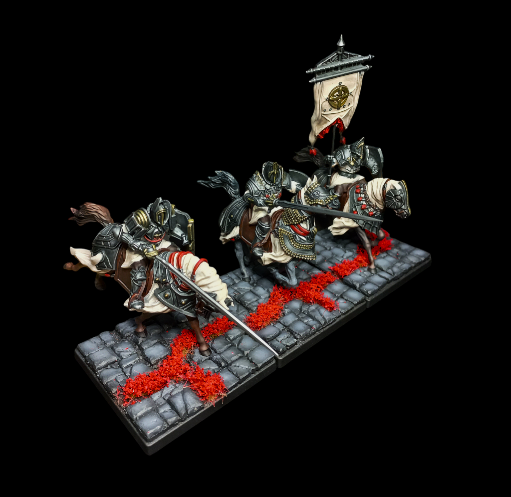 Most likely to be combined with a Feudal dynastic ally who makes good use of the Orders rules, this Sealed Temple wedge aims answer the Yoroni force economy question by cracking the hard targets directly with a unit that uses high native speed, unstoppable and fluid formation to hit them from outside their own practical threat range. The Crimson Tower are necessary to unlock the Crimson Tower priory commander, who adds Terror to the Sealed Temple unit, but in a pinch if points were tight they can be dropped to make the Priory the slightly weaker Sealed Temple version