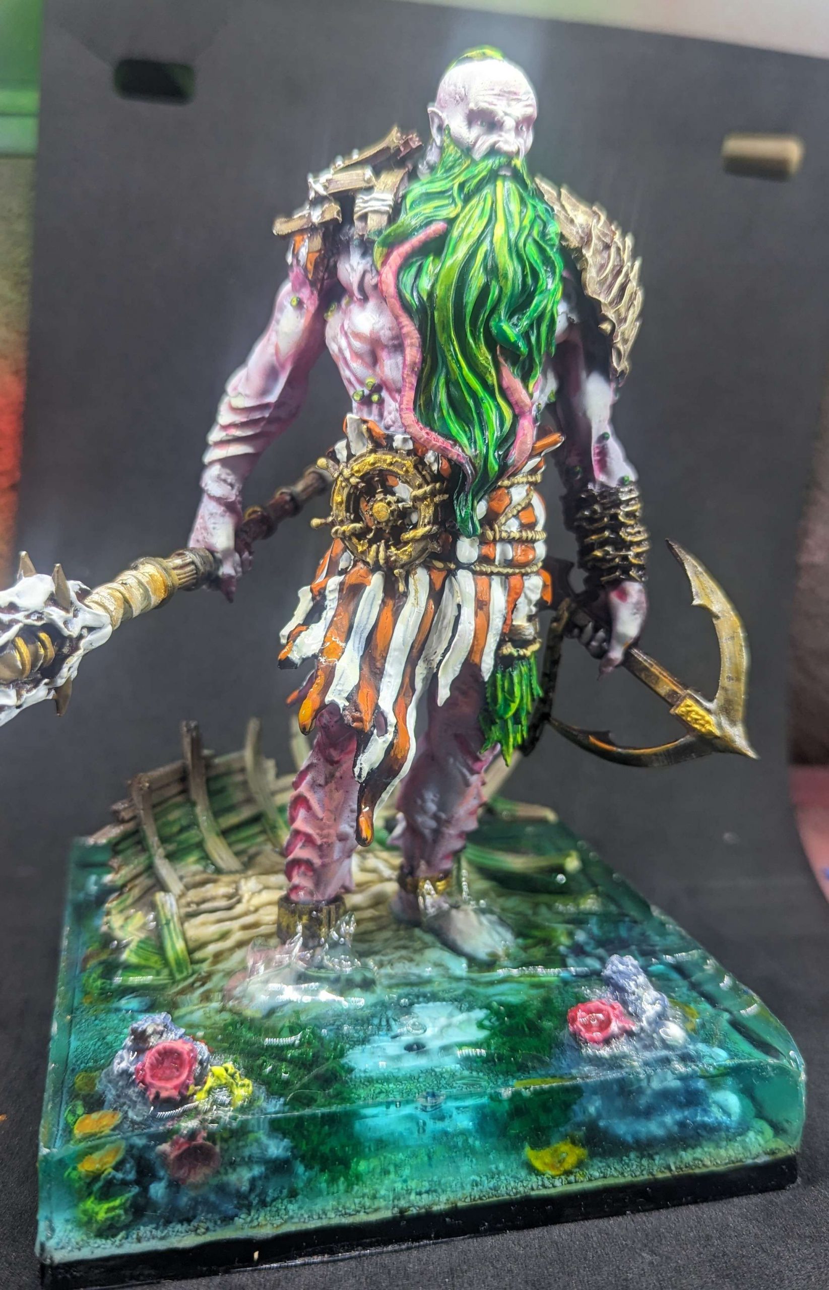 Definitely round one, against Ewan and his Nords. Ewan’s list matches my own in scenario with extreme speed (combining natively fast units with the Shaman supremacy to effectively give almost the entire list vanguard). On top of that, I had the round one shakes off pretty much no sleep in a big way, and to be perfectly frank – Ewan is a better player than I am. He demolished my right flank, unpicked the Force Grown Drone unit as cleanly as I’ve ever seen it done and pushed on to secure a scenario zone on my side of the board which kept the score absolutely neck and neck for nearly eight consecutive turns.