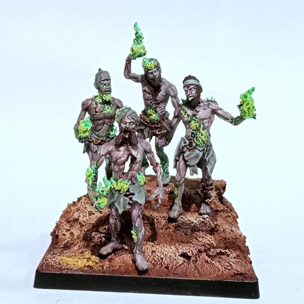 because they’re on fire? I mean, probably? This kit is just fun all around. Easy to assemble, with enough variety in heads and arms that your block of zombies won’t look too same-same when arrayed on the table. There’s a lot of character in the heads and poses of these models, my absolute favourite is the little guy with the gaping hole in his chest.