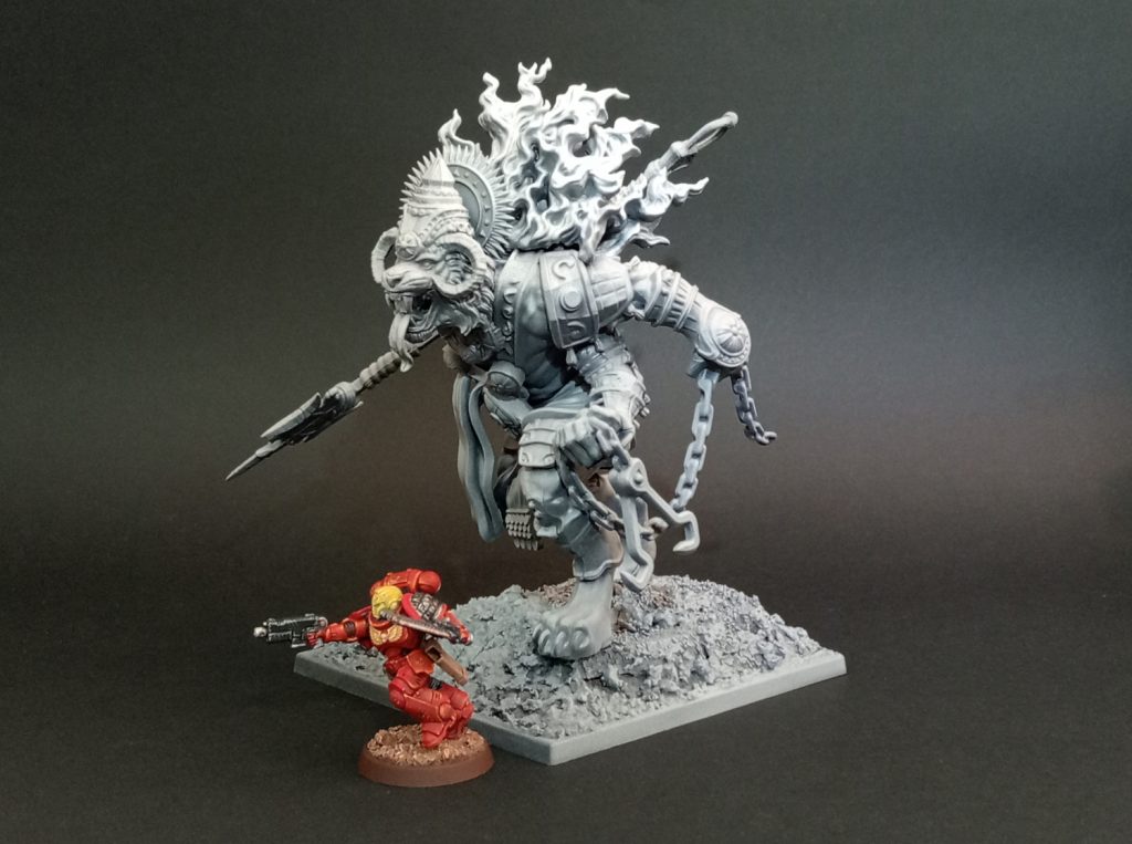 Rakshasa with standard space marine for scale. Metric? No, Imperial. (photo courtesy of Musterkrux)