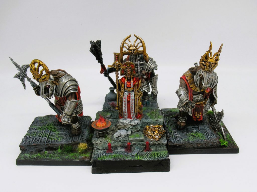 - Early engagement: by the closing moments of round two and through round three you should have more activations than your opponent. Use that to set up pressure and trading situations. Don’t be afraid to do things like aggressively move both your hassassins forward as the last two actions of a round to be able to guarantee a charge with one of them at the start of the next round. They aren’t that expensive so will often trade up, but the important thing is that you are looking to trade, not get unanswered picks. Whittling down both armies early is favourable for you as it plays into your early strength and powers up the Divinity.During these early turns, usually focus on getting the regular Dark Power pool up to T2, then shift gears to powering up the Divinity. Keep the Archimandrite’s unit nearby behind her in case she needs some chip heal and be prepared to use units to screen or punish a dive, but generally distance and the pressure you’re exerting with other units will keep her safe.
