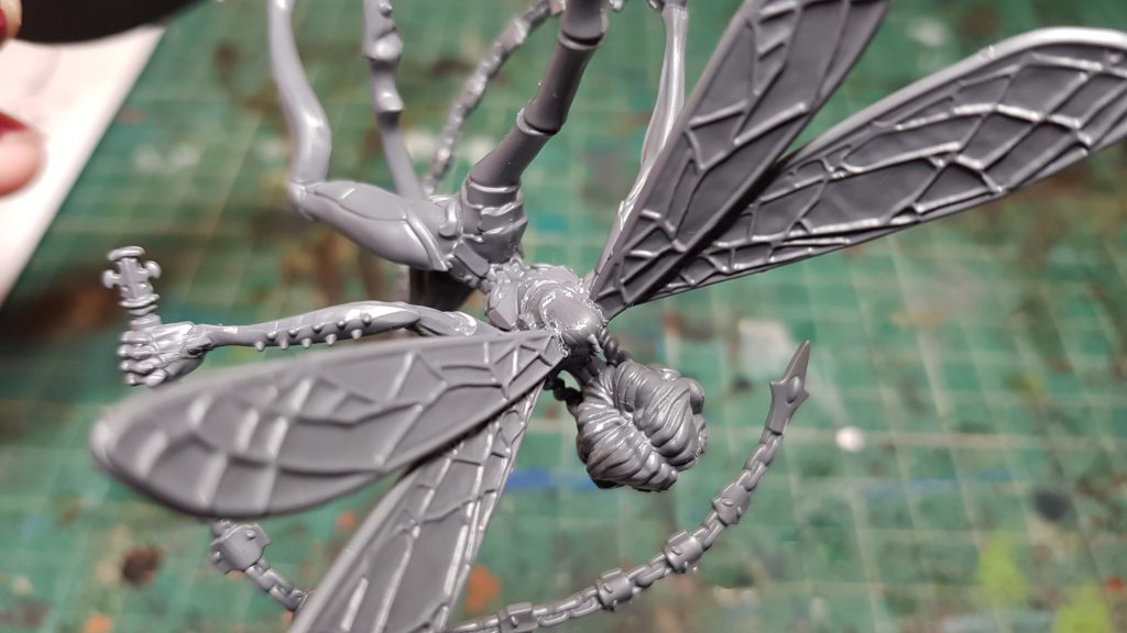 The worst part is the wings, because they just slot into little holes in the back of the body. This means you have to hold them in place for absolutely ages, otherwise they'll droop, fall out, or just not bond well. It might actually be a good idea to subassemble the models and paint the wings separately, but that will make the aforementioned difficulties with attaching them to the Dancer's back even harder.