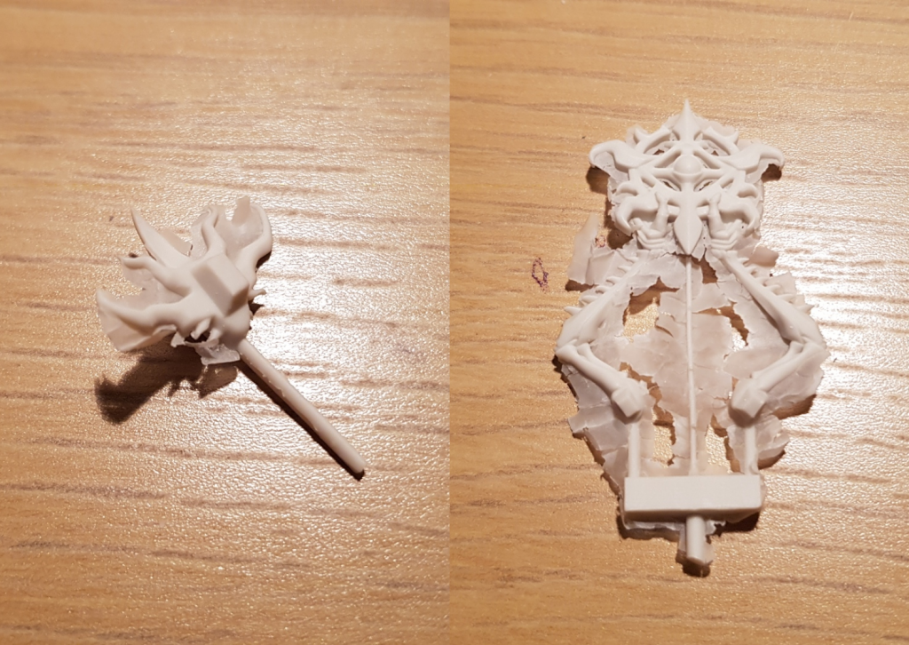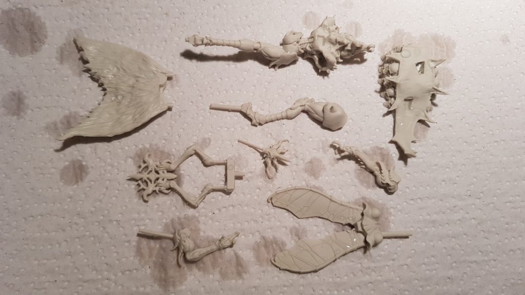 Any miscast-looking bits were restricted to the skulls on the base, where it really doesn’t matter. There is a mould line running down his front leg of the sort that requires sanding, which I couldn’t be bothered to do. At least it’s not too noticeable with paint applied. I didn’t notice any release agent stuck to the model, but I gave the parts a wash and scrub in some soapy water anyway.
