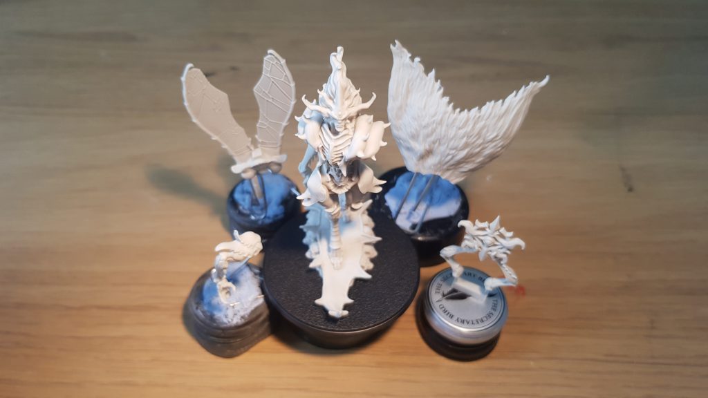 I don’t normally go for subassemblies, but for this model it seemed like a good idea. I ended up with 5: the body, the left arm, the hands which hold the icon overhead, the wings and the cape. You could have fewer, but I really wanted to explore the model while painting it.
