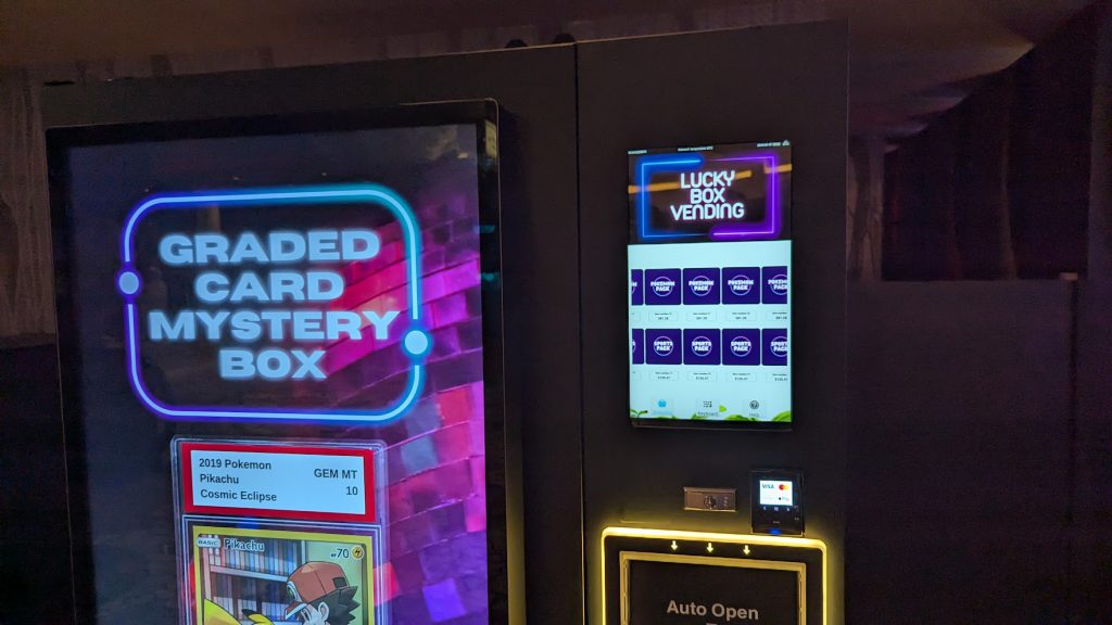Why is there a vending machine offering "professionally graded" Pokemon and sports cards and booster packs at the Rio? That is so weird. Credit: Kevin Stillman