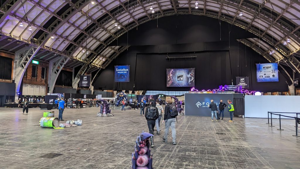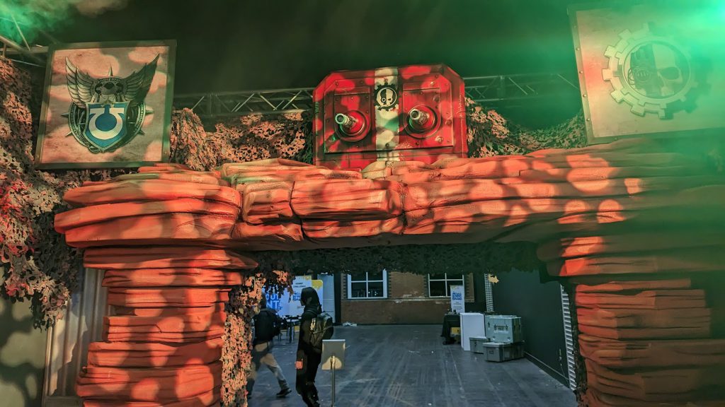 The entryway was a very cool Leviathan-themed environment, and after going through that it led into the main hall. As I had never been into the Manchester Central convention hall before I did not know where to go to queue up for the 10th Edition preview. I did however wind up in the shop before the real horror stories began. I picked up Primaris Dante, Primaris Azrael, the Warhammer Plus Khorne Terminator, and Blood Angels Primaris Lieutenant Tolmeron. At that point the queue for the preview was up, and I was able to get a relatively good seat for the preview.