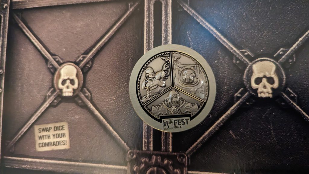 Warhammer Fest 2023 Scavenger Hunt Pin Badge. Credit: Kevin Stillman