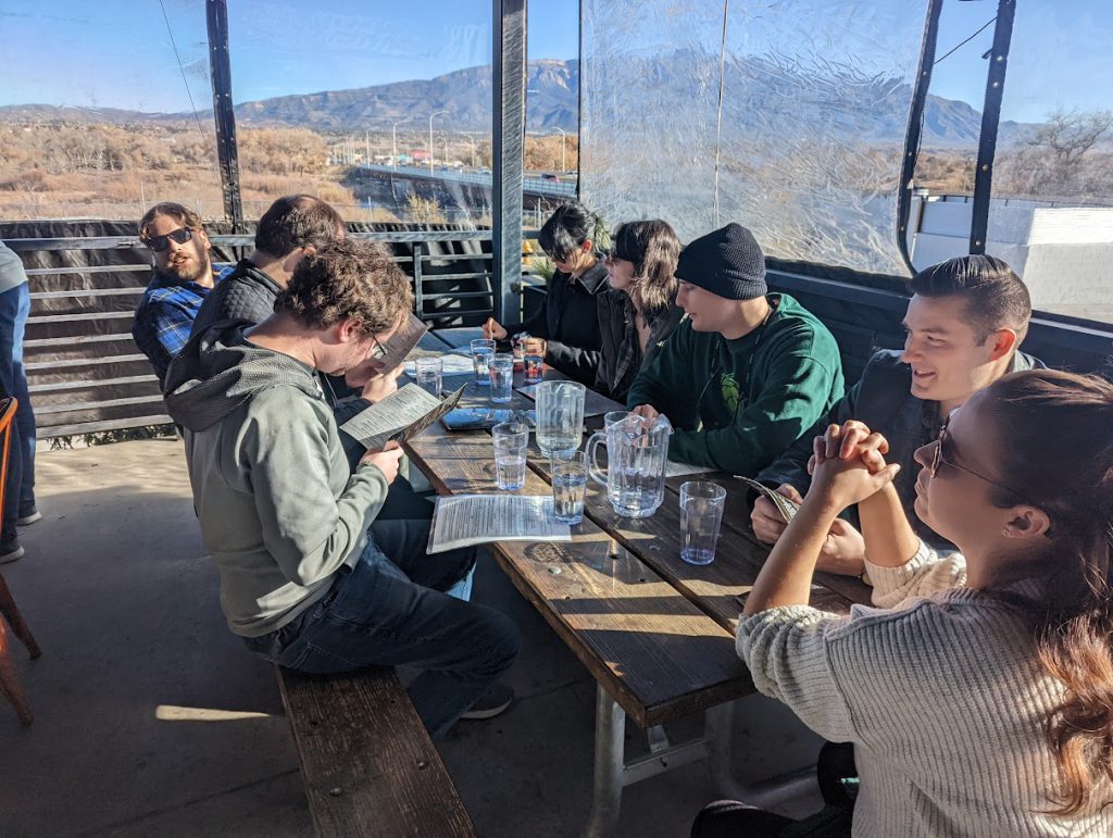 After dropping off my luggage, I headed back down to the lobby to see about getting lunch with the rest of the group. In addition to Andrew, Mike "Enzo The Baker" DiCianna and his wife Emma were there, as was Rocco, Andrew, Norman, and some other folks who names escape me at the moment. Point is, there were a lot of us, and we were 1) hungry and 2) not super-interested in hotel food. The plan was to go to one of the local breweries, and we settled on Bosque Brewery. While Enzo and Emma had rented a car, the rest of us had not. And it was at this point we learned that Ubers and Lyfts did not like to come out to the Tamaya Resort. We eventually found a taxi company that would pick us up, and then waited thirty minutes or so for them to show up. The time we had to wait was not clear, as the company's App was something like a bad copy of Uber.