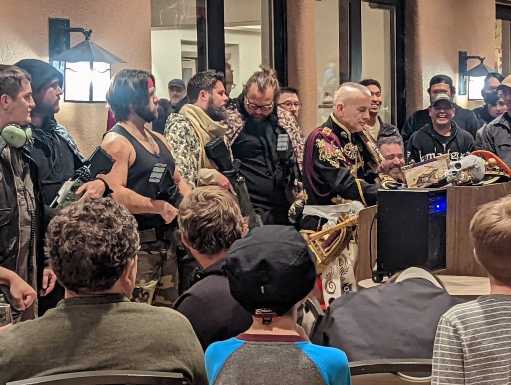 I was hyped. I was awake at 3:00 am D.C., in time to work out before my flight, and made it to the airport with plenty of time to spare. That was a good thing - DCA was pretty busy despite it not being dawn yet. After an uneventful flight (aside from the passenger in the middle seat who was rather oblivious when it came to the topic of personal space), the plane landed in Dallas and we had to board a different aircraft. This was great since we got to get onto the plane before everyone else. Plane landed in Albuquerque, and since I had gotten to board quickly, I was *off the plane quickly*. Heading down to baggage claim, I encountered Craig "Master Slowpoke" Sniffen, his wife Sarah, and their friend. We were able to get aboard the shuttle with, I believe, Andrew "Hero of Team Imperium" Corban and several others. The driver of the shuttle was roleplaying as a servitor, and trying to play an audio briefing introduction to the event. However, between certain technical difficulties and the audio being somewhat quiet, it was hard to hear. GW was clearly going all-out to make this an immersive experience, but as would be a theme for this weekend, didn't *quite* make it.