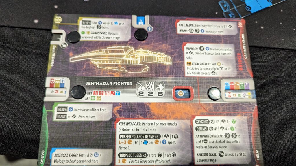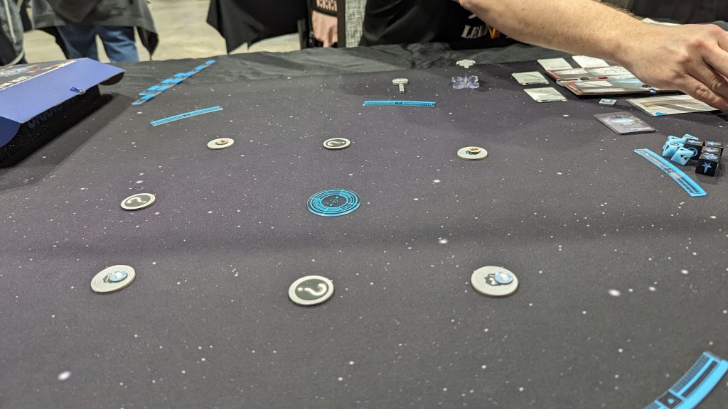 Star Trek: Into the Unknown is a new miniatures game made by WizKids. Unlike their previous game, Star Trek Attack Wing (which is Star Trek Heroclix), Star Trek Into the Unknown “was designed from the ground up” to be a Star Trek game. Each player will control a small task force of ships with which they do missions, which can be anything from “scanning an anomaly” to “fighting Klingons off the Starboard Bow”. There were a lot of rules to take in from the demo game - and there was one guy from Wizkids for five people, so getting clarification on the rules while I’m tired wasn’t the most fun I’ve had at the con. The exploration parts of the game seemed fun, but the combat seemed a little clunky, with lots of tests, rerolls, and universal special rules I didn’t fully grok. I’m certain with 1) more time and 2) more ships it would be easier.