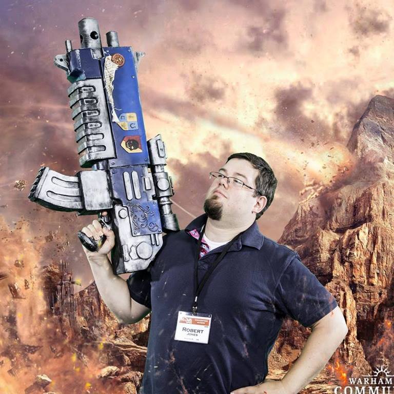 Rob Jones wielding a Bolt Rifle. Credit: Warhammer Community (via Rob)