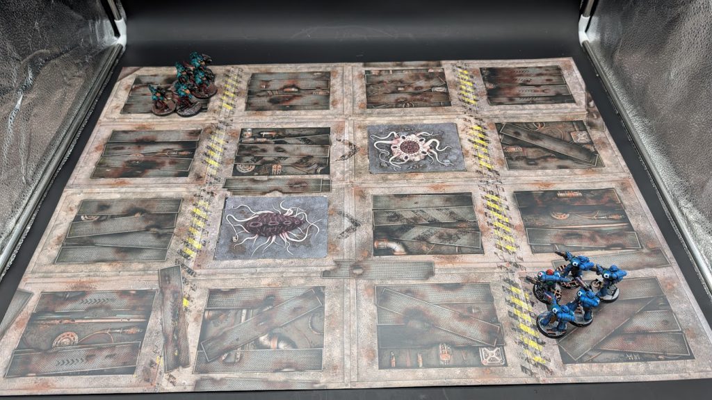 Turn 2: The Marines were disrupted, but still able to get behind the terrain card to be out of line of sight for any Tyranid weapons.