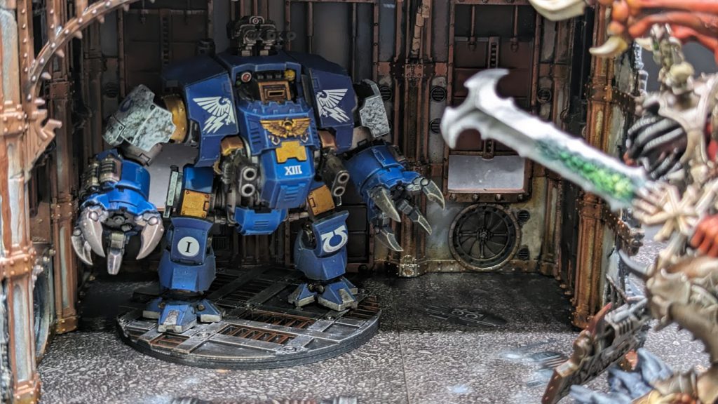 Ultramarines Brutalis Dreadnought vs. Angron. Photo Credit: Contemptor Kevin Stillman