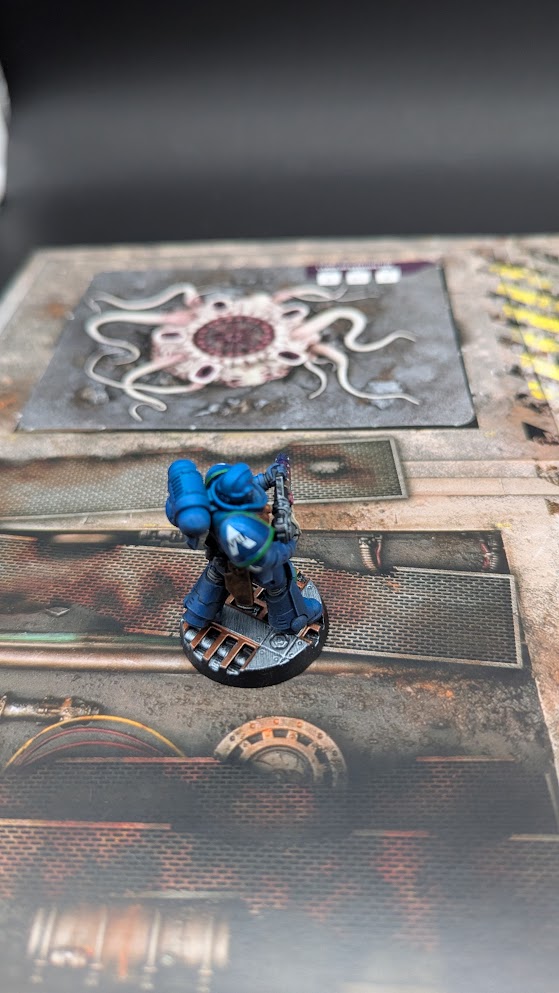 Brother Regulus allows himself a moment of pride as the last infestation site is reduced to a charred husk. He takes a moment to reload and to upload the coordinates of this location to his battle-brothers, who will join him soon. Now purged of the xenos taint, this will be a fine staging post for the rescue of the missing Captain Marius.