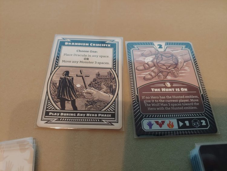 A second issue is that of difficulty. Co-op games like Last Bastion are often touted for their seemingly insurmountable difficulty as a selling point: you and your team will really need to work to savor this victory! Perhaps shockingly, this is something that Horrified actually also has: you can expect to lose about as often as you win in Horrified, and you may find that the more people and monsters you play with, the more likely you are going to lose than win. Horrified is, well, scarily difficult. The issue arises from the amount of cards in the Monster deck, which don’t change depending on how many players or monsters are involved in the game. 2 players, 2 monsters? Same deck as 5 players and 4 monsters. Every time a player ends their turn, they draw a monster card, and if that deck runs out, the game ends. I personally don’t believe the game is even winnable in a 5 player/4 monster set-up, as the amount of times monsters will activate and attack players/villagers is so high that you’d probably have people getting knocked out before their first turn even happened! In my experience, I’ve found the sweet-spot is usually 2-3 players and 2-3 monsters, and would generally suggest that the more players you have, the less monsters you actually use, and in general I found 3 monsters to be the most interesting and challenging.