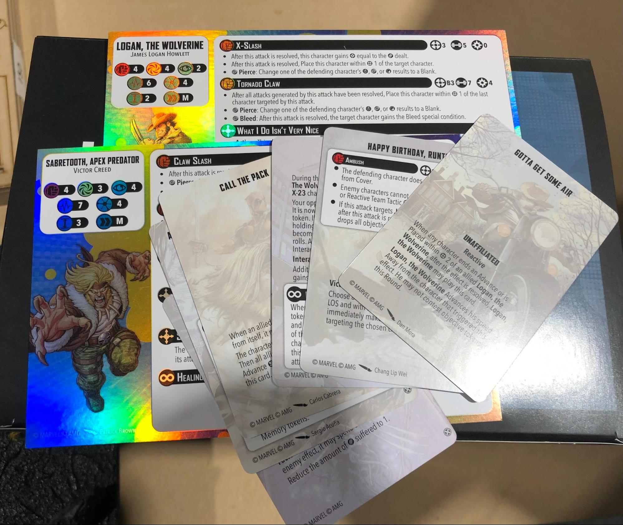 The other thing waiting for me was the Weapon X Rival Panels box which I’d ordered on the Friday for collection as I wanted to run the new affiliation on the day. True enough I was handed the box almost as soon as I’d stepped through the door. Note that I had printed models for both Logan and Alpha predator ready as I always play fully painted.