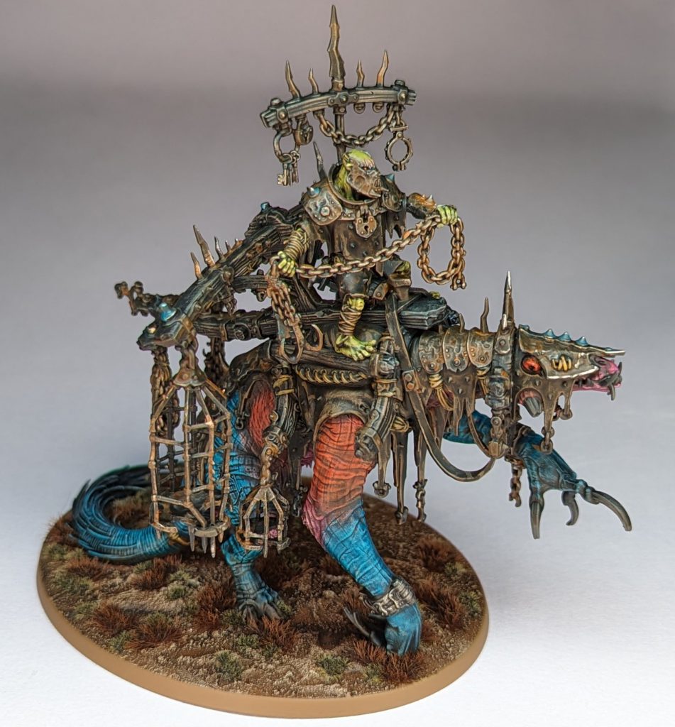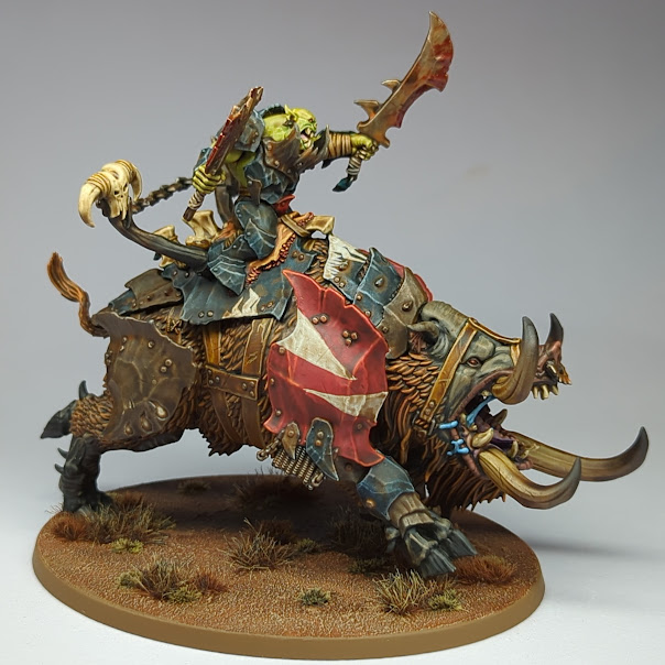 I finished the Ardboyz and an Ardboy Big Boss early in the month, and then moved onto a Maw-Grunta Gouger. I varnished these alongside the Megaboss from last month, and the varnish promptly frosted on the unit and both characters, leaving only the pig unscathed. Reapplying gloss varnish wasn’t enough, but a bath of olive oil just about saved the Ardboys, and after a thorough cleaning and drying they got a final coat of Tamiya Flat Clear and were saved. No such luck for the two characters, which after much fussing had to go into the pot of Biostrip to be repainted.