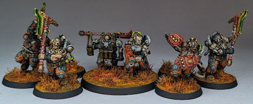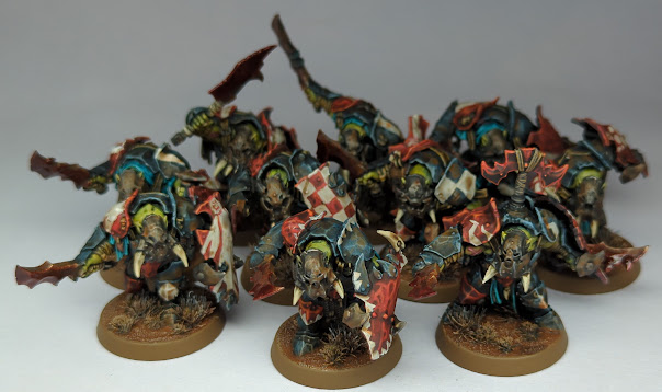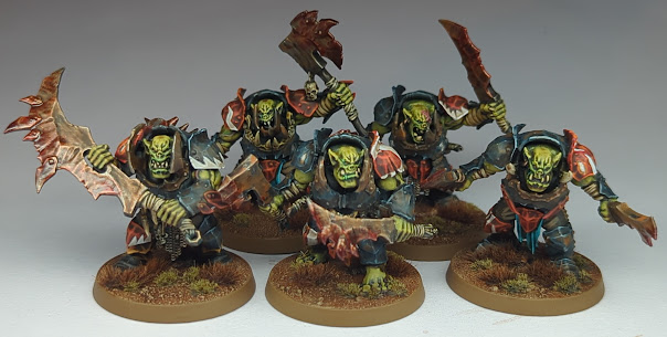 September also heralded the release of a bunch of new Ironjawz models, which led to me redefining my Kruleboyz project as a wider Orruk Warclans project. I painted up a unit of five Brutes, and a Megaboss, and started on a unit of ten of the new Ardboyz.