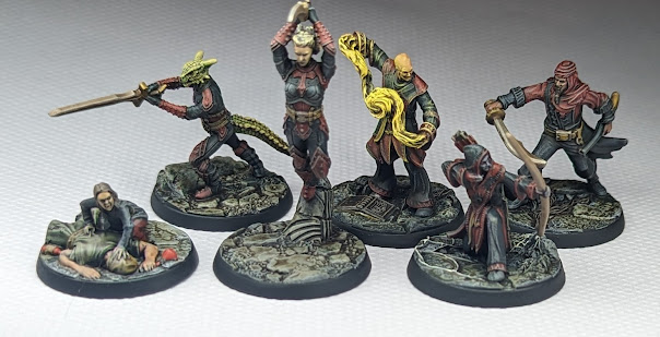 You guessed it, more MESBG! This time six Uruks with pikes and two more with crossbows. I also started to branch out into some other stuff, painting a nice Frostgrave snake-man, and a couple of test models for a since-abandoned (this phrase features a lot in my hobby life) Astra Militarum project.
