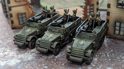 I also played in a local Combat Patrol event, coming two points off of getting the wooden spoon. I did pick up both the painting award and the vote for favourite opponent though, which was nice! Later this month I hosted Pete and Matthew for a Flames of War mega-game, and in preparation I painted up a unit of mortar halftracks and a recon platoon for my D-Day Americans.