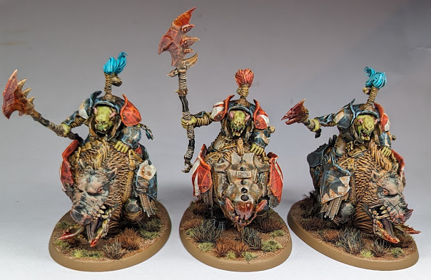 I knew I’d signed up for a one-day AoS tournament at 2,000 points in early December, and I was determined to take Ironjawz, so I had some more painting to do. I built up two Warchanters, one regular and one converted from a Brute for an alternative pose, and got them painted up alongside three more Brute Ragerz and three Gore-Gruntas, and with that the 2,000 point force was complete!