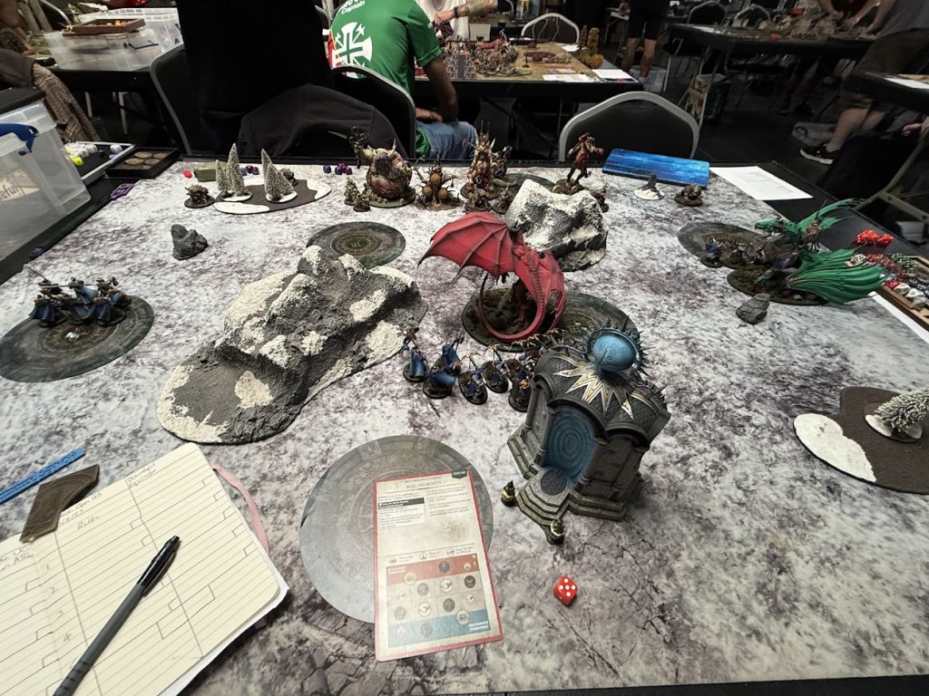 Sunday I woke up feeling refreshed, and we checked out and made it across to the venue without incident. I was initially paired into a Gitz list (lots of Squigs) for Game 4, which I was feeling alright about as I know how to play it with my list, but due to some late arrivals I was shuffled into a new opponent.