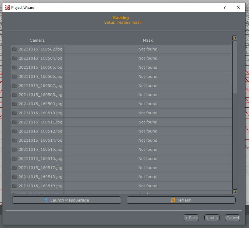 After the "Photo selection" screen you will be presented with the "Masking" screen, click "Launch Masquerade".