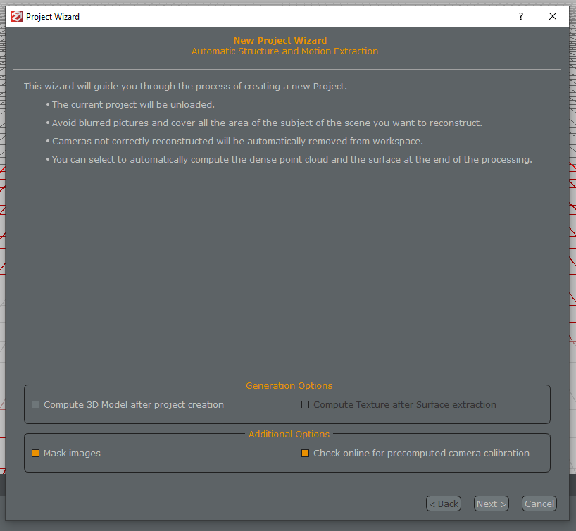 Start up Zephyr and start a project as usual other then selecting the "Mask images" option.