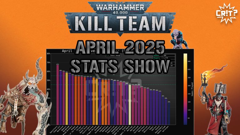 John from Can You Roll a Crit? is back with all the global tournament stats for Kill Team for April! He goes over all the data from winrates to podium placements, explaining all the information and trends shown to see who ended up the best and worst kill teams, as well as how close the stats were to balance dataslate changes!