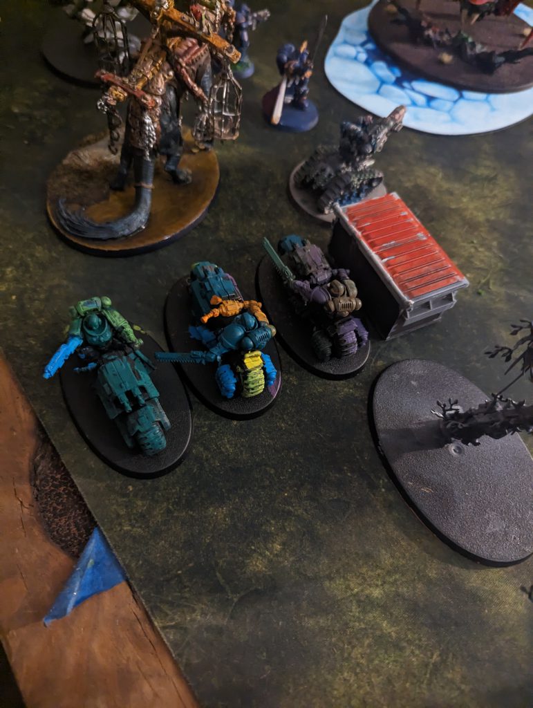 Earlier painting sessions of the marines involved more colors that slowly transitioned to a dark and muddy brown as the paint became more mixed. Who could resist painting dudes on bikes with chainswords?