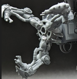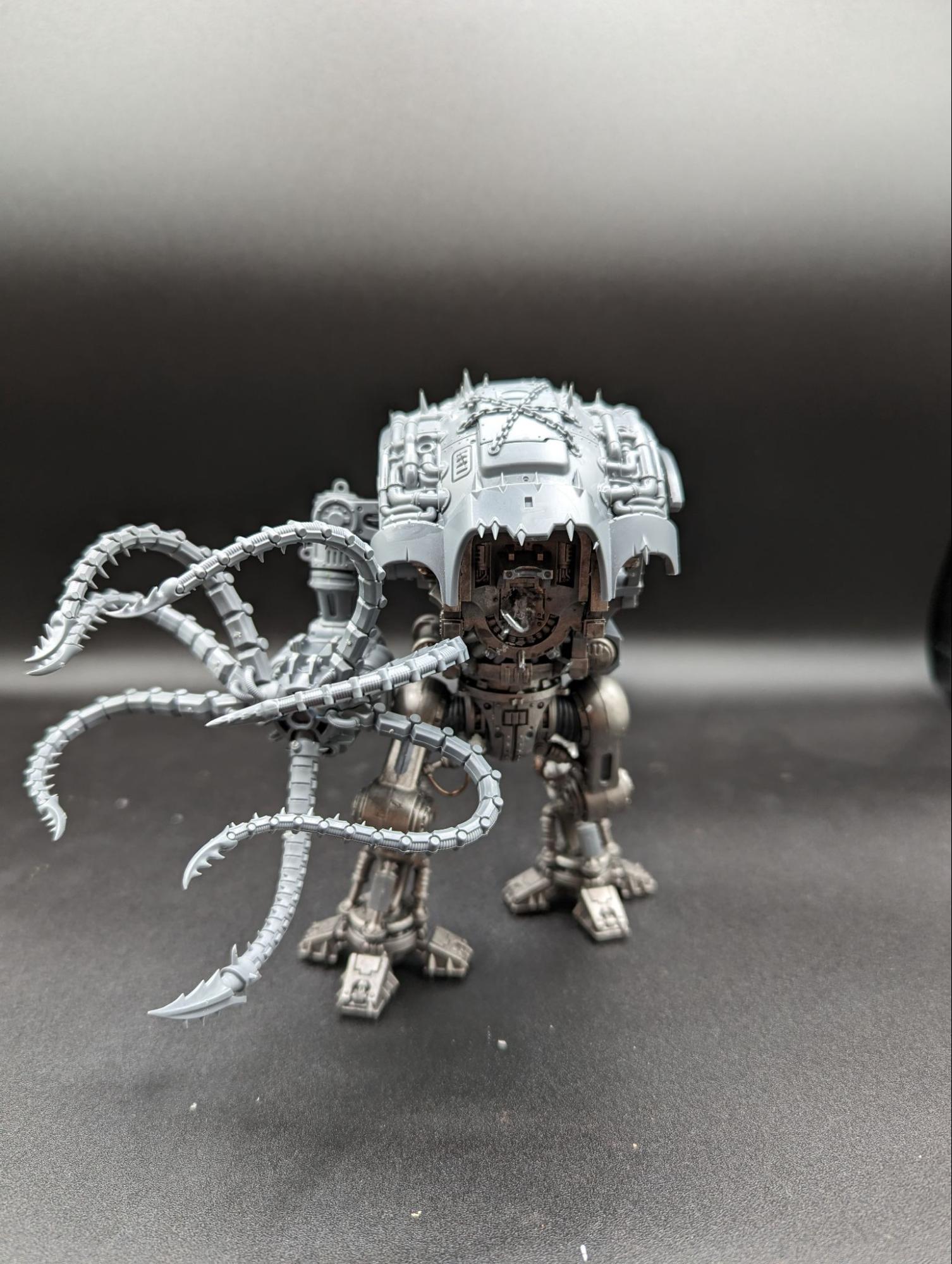 Next, the weapons. Brutal and Khorne were still not really represented on the model. The claw seemed like a good opportunity to tackle the brutal theme, so I sourced a couple of options since there wasn’t anything bespoke that really sold what I was looking for. I wanted it to be chaotic and weird, so I had to get creative. I ended up getting Defiler legs from another rescued kit, extra Maulerfiend tendrils from a friend who built a Forgefiend instead and some thermal cutters from the same kit.