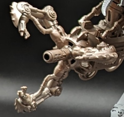 Let's return to our favorite son, Bloodstoker. First thing to tackle was the gun. While assembly was fine, it looked way different than the rest of the model. So I decided to have the main color on it be the same color as the armor paneling, with various metal accents, to tie it in. This was very much a “it's gonna look like shit until it's done” situation but as you can see in the end result, this decision really made the model look cohesive.