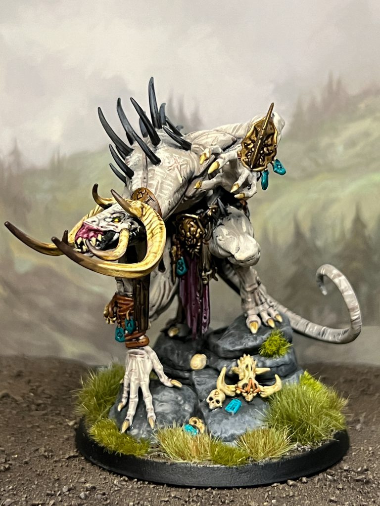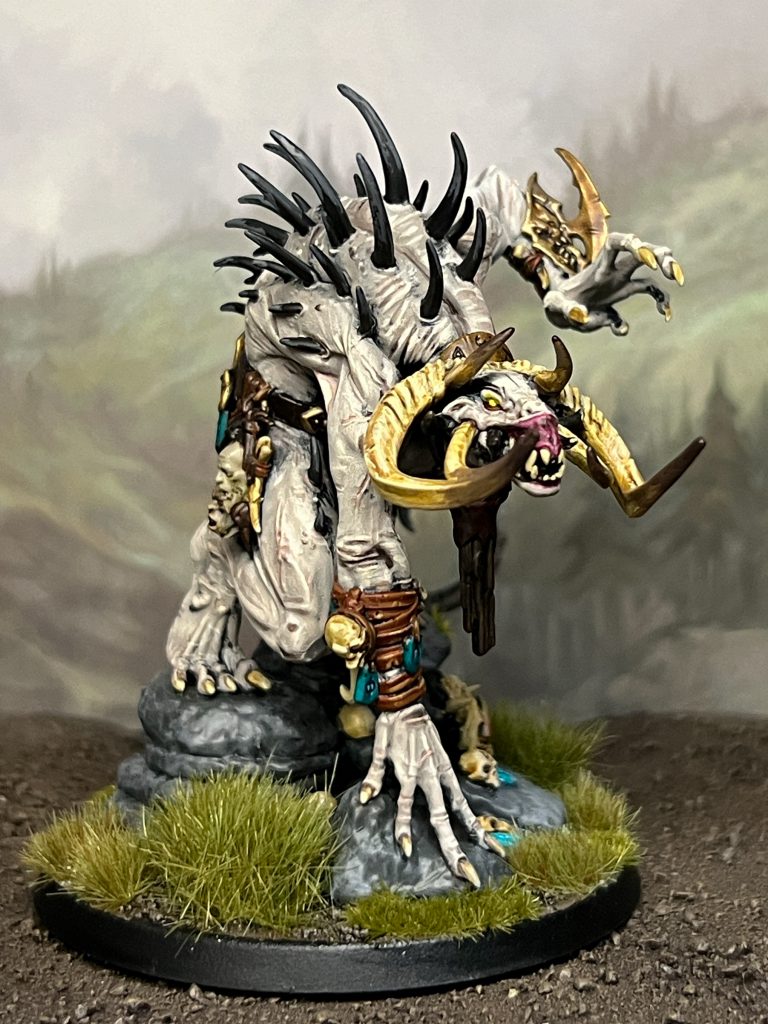 SRM: Think like a Chaos spawn that's also a tribal totem; it's neat!) but was given the opportunity to build and paint it which I snatched up real quick. I might move it across to a square base though in future for an Ogre Kingdom army as a Gorger. Maybe that's why I painted it pale skinned? Or maybe I only think it'd work as a gorger
