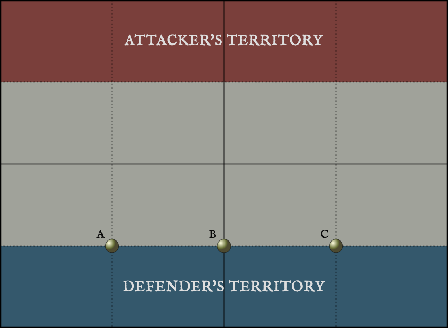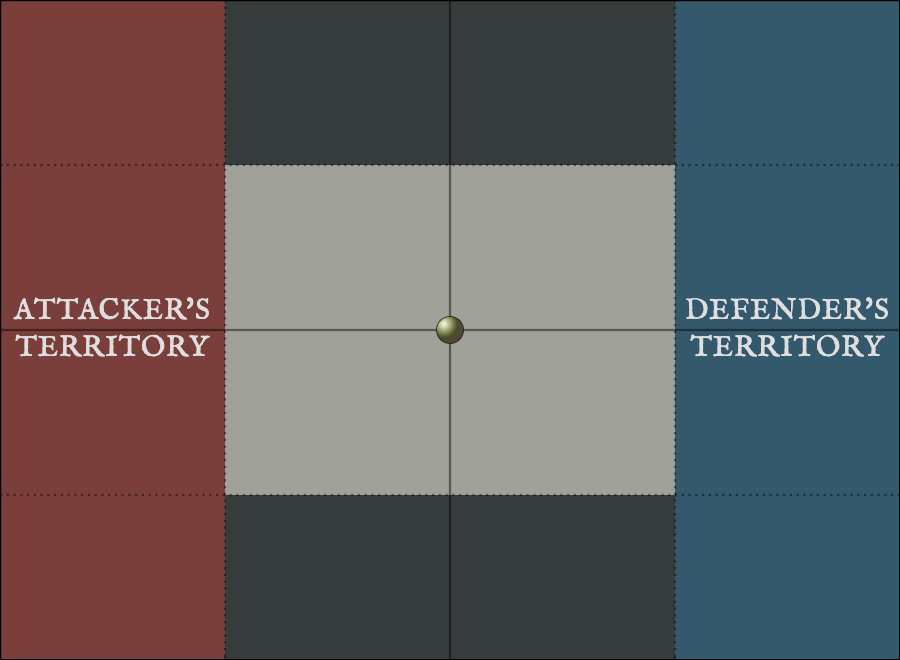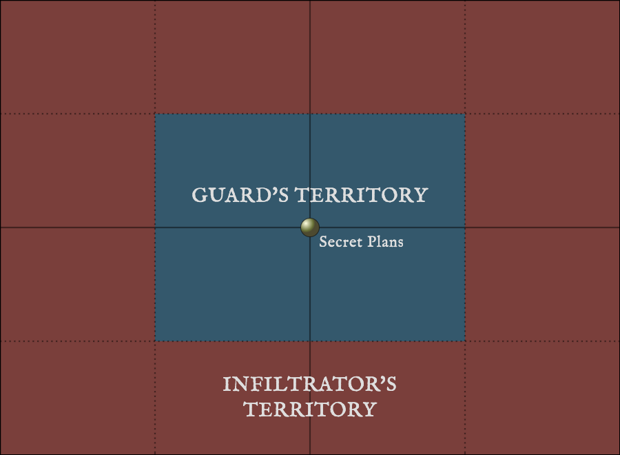 This final mission is a shell game. The Defender picks one of the three objectives in secret to be the weak point, and the Attacker must guess which it is. The mission is shorter - only 4 rounds, and the only indicator of success is controlling the weak point at the end. A good poker face and reading opponent's formation is going to be necessary to succeed in this mission.
