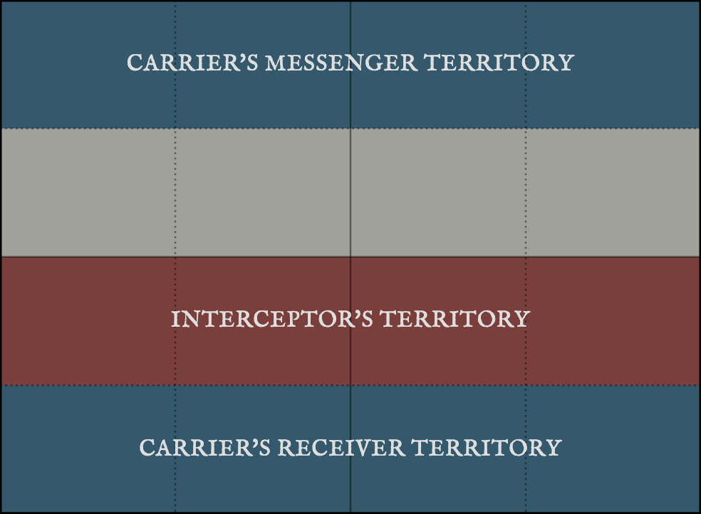 For this the Carrier needs to split their army into 2 equally sides contingents. The goal is to get one of the messengers into the receiver territory. If they do end the battle with at least one unit in and not in combat, that's a major victory, with a minor victory for making it but being in combat.