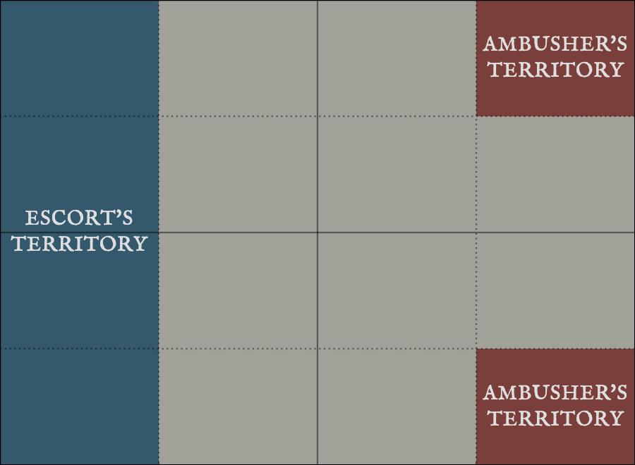 Another mission about trying to escape the board, the Escort player picks a Hero to be the envoy and the goal is to get them to the other side of the board and escape with an important missive. If the Escort has a Harbinger in their army they must be the envoy, otherwise any hero will do.