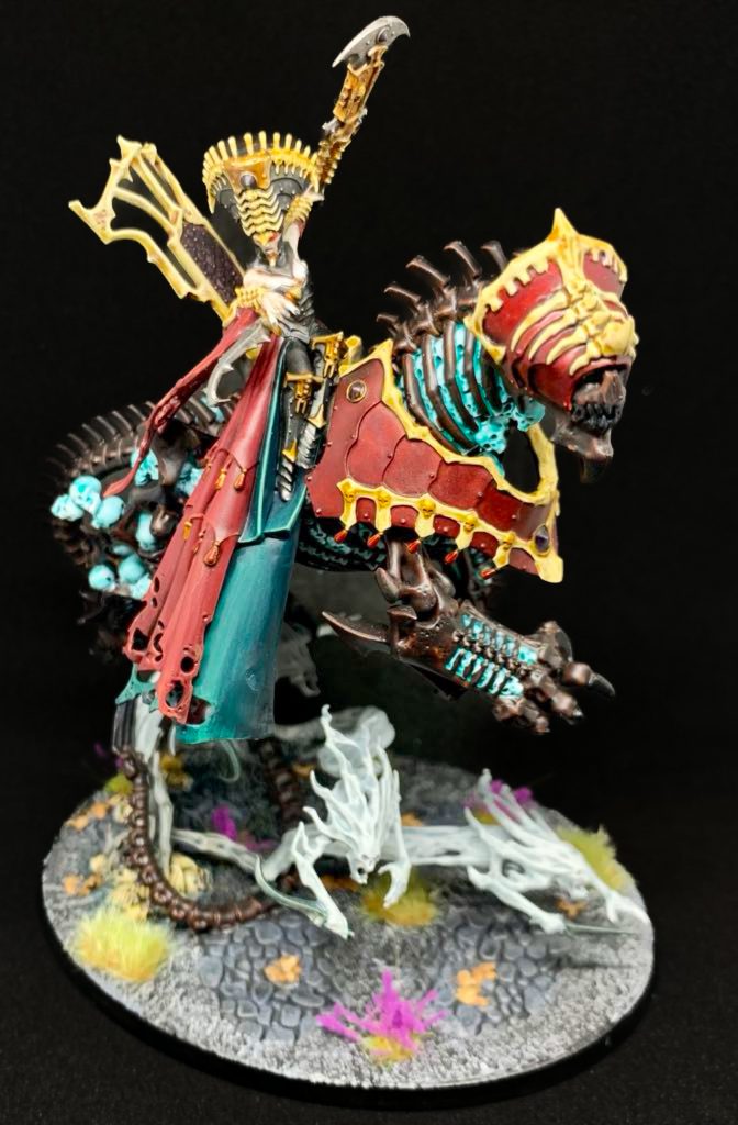 Last up we get Lady Olynder, 10 Dreadscythe Harridans, and two units of 4 Myrmourn Banshees. These units all get to retreat and charge and still ignore modifiers on saves; glad they remembered to keep this for the ghosts! They also all get a single 8+ charge roll ability which applies Strikes Last on effected enemy units.