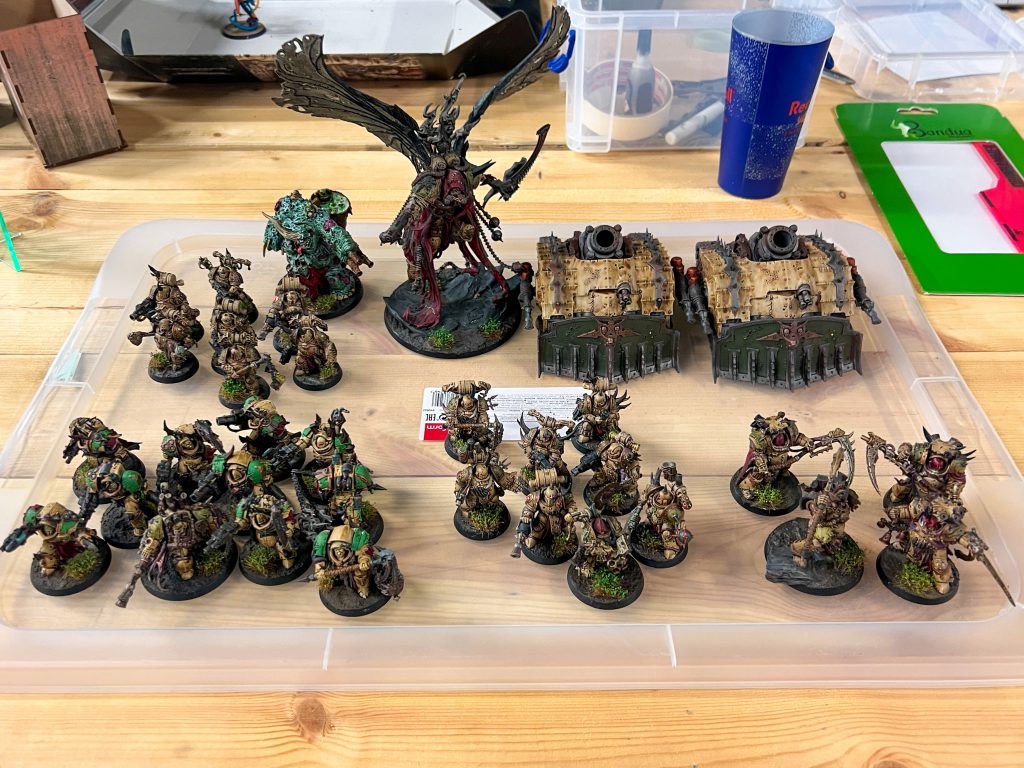 When I got home I even started painting some of those that I'd already built for more options in future games. Namely: Sorcerer in Terminator Armour, a 6th Deathshroud, and 2 Blightlords with autocannons and another 2 with plague spewers. That Blightlord blob down there? I'd really prefer it to have autocannons and plague spewers so that it becomes a real overwatch threat and autocannons can put out a lot more hits and wounds than blight launchers between Sustained 1 and Devastating Wounds; especially with a Lord of Virulence leading them to re-roll all those wound rolls.