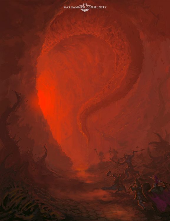 Deep in the heart of Ghur something is pulsing. As this energy grows stronger, so do the creatures of Ghur grow more feral. This is also true of the Great Mountain. Deep in its core it is stirring. In its depth, something is rising. The deepest cavern of Beastgrave is known as the Direchasm. Until now its passages had been sealed by hardened amber, but this amber has liquefied and freed its treasures—and monsters.
