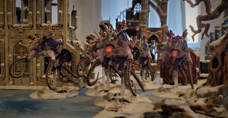 - Master Regenesist (25 points): This Enhancement let’s you revive D3+3 Wracks to the bearer’s unit instead of D3+1. Nice to have, and if you are committing to a big Wrack brick with a Haemo then this makes complete sense to take along for some baiting / regrowing shenanigans on a key objective.