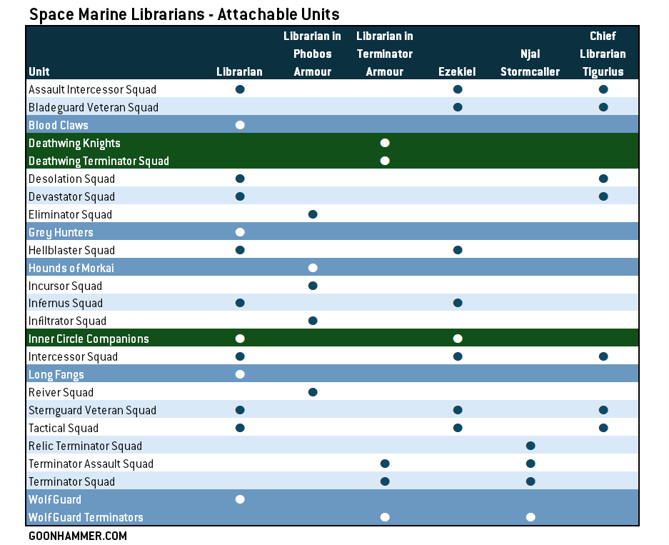 If you're wondering which units non-Terminator Librarians can join, the good news is that we've done that homework for you already: