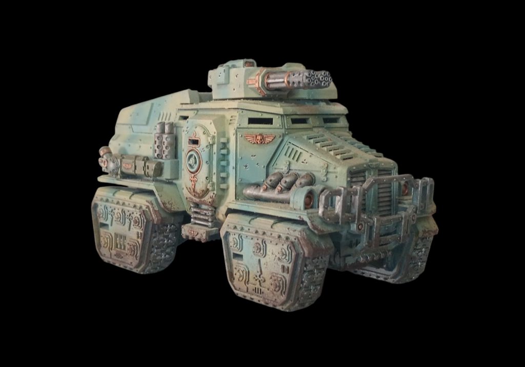 With your cargo picked, now comes delivery. The Chimera offers a decently durable hull with a range of heavy bolters/heavy flamers and some chaff shots as well as Firing Deck 2, but the Taurox/Taurox Prime are likely the preferred choice here. The Taurox is extremely fast, and lets you advance and disembark while the Taurox Prime offers some okay long range shooting while you push up and reroll hit rolls for a unit that disembarks provided it shoots the same target.