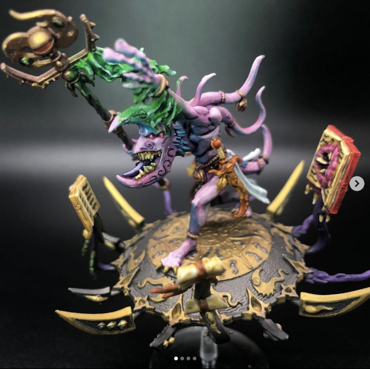 Infernal Puppeteer (10 pts) - Monster model only. Each time the bearer shoots, you can select another friendly Tzeentch daemon unit within 9”. If you do, then when you pick targets for ranged weapons equipped by the bearer, you can measure range and determine visibility from one model of your choice in the selected unit instead. This is a pretty great upgrade for 10 points, and while it won’t make your shooting better like the Everstave, it lets you fire off ranged attacks from a comfortable hiding spot and around corners, without having to risk your Lords of Change. Most notably it doesn’t count as an Indirect Fire attack as you’re just using the Line of Sight of that other Tzeentch daemon model.