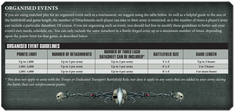 - Unless otherwise specified, an army cannot have more than 3 of a given datasheet unless it has the Troops or Dedicated Transport battlefield role.