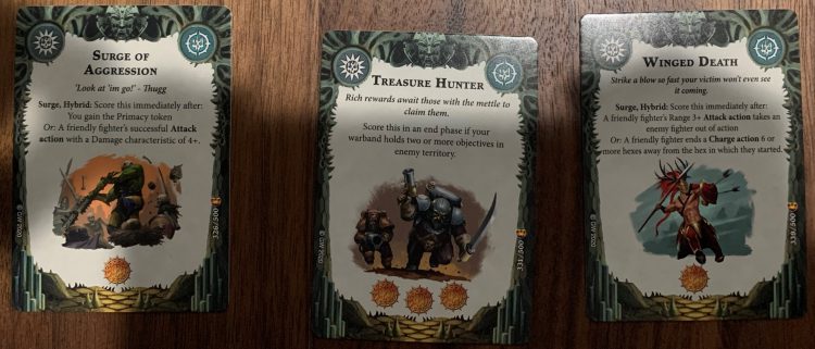 Excellent Aggro card. Most, if not all, Aggro warbands use their Leaders as beatsticks, so you’ll probably get this naturally. Heck, even Hold Objective warbands like Thorns or Grymwatch have good beatstick leaders, so this might be a very ubiquitous card.
