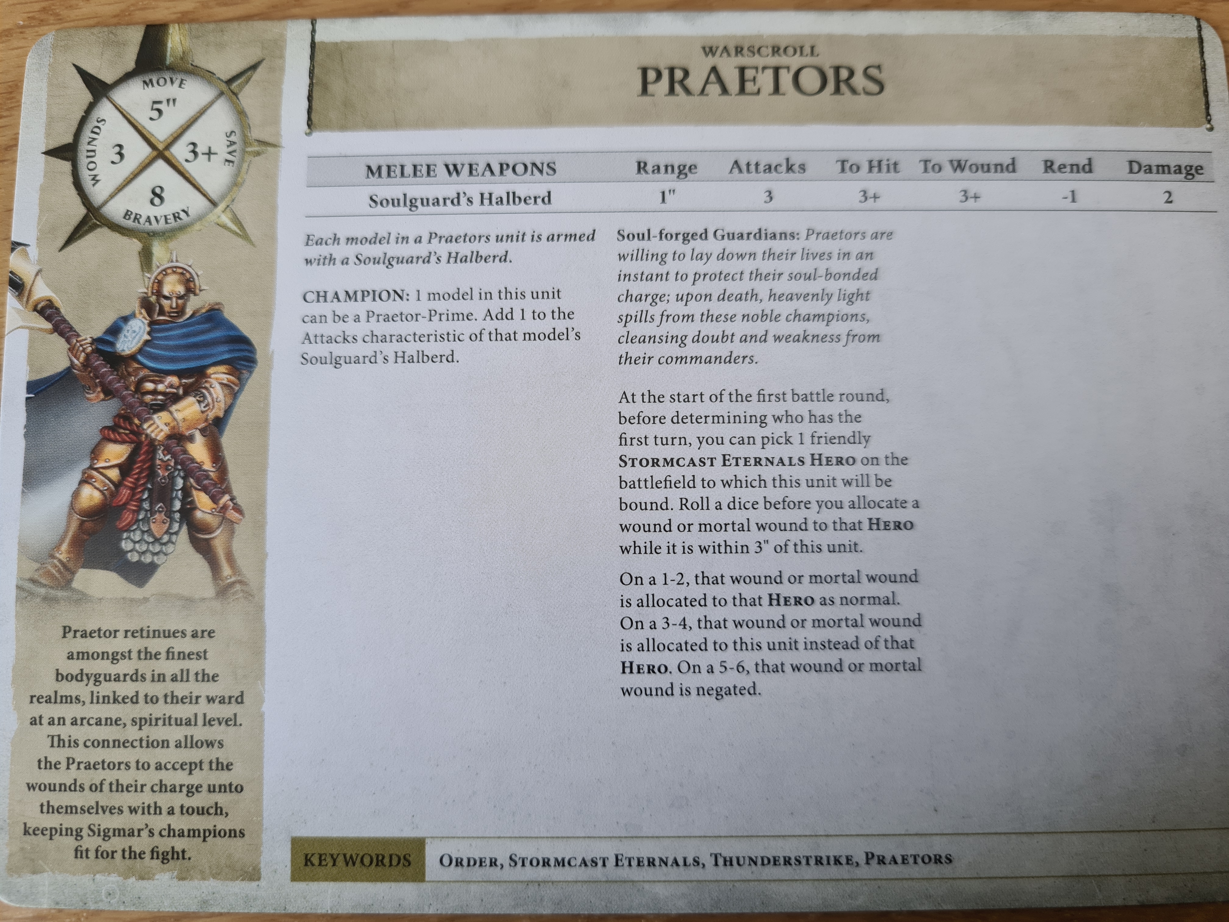 An extra damage pip on their Soulguard’s Halberd compared to Stormspears is neat for sure, but what you’ve really got here are possibly the best bodyguards we’ve seen to date. At the start of the battle you can pick a friendly Stormcast hero for this unit to be bound to. Whenever you’d allocate a wound or mortal wound to that hero while Praetors are within 3”, instead roll a D6. On a 1-2, hero takes the wound. On a 3-4, Praetors take that wound. On a 5-6, that wound is negated. For those keeping track at home, this means that Yndrasta could have a 3+ save, then a 4+ ward, then (functionally) a 3+ ignore wound in addition. This roughly equates to a 2+ ignore mortal wound roll, or a, uh, 0.3+ save against a normal wound with no rend.