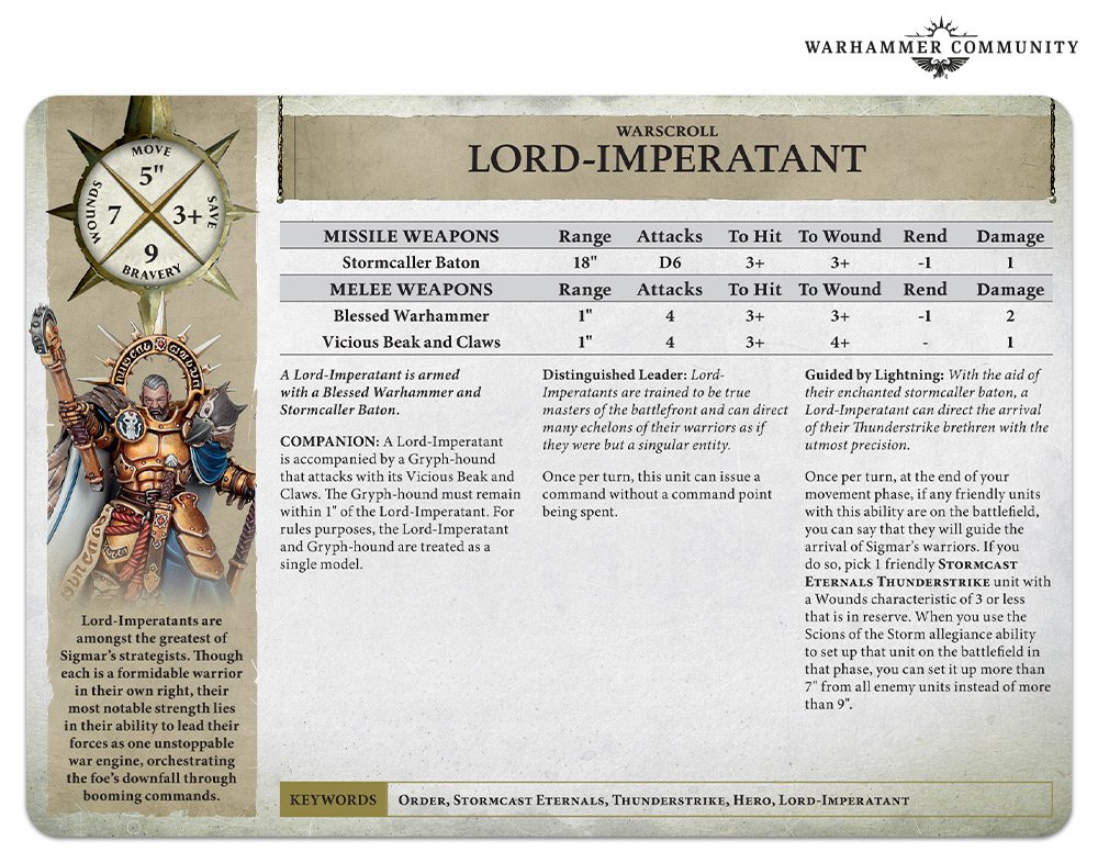 Verdict: A real neato-burrito, Stormcast already have a surplus of buff characters and a lack of beatsticks. The Lord-Imperatant continues this legacy by being interesting and likely of use in some very specific builds, but most commonly going to be seen in the armies of new players down the back end of the event hall.